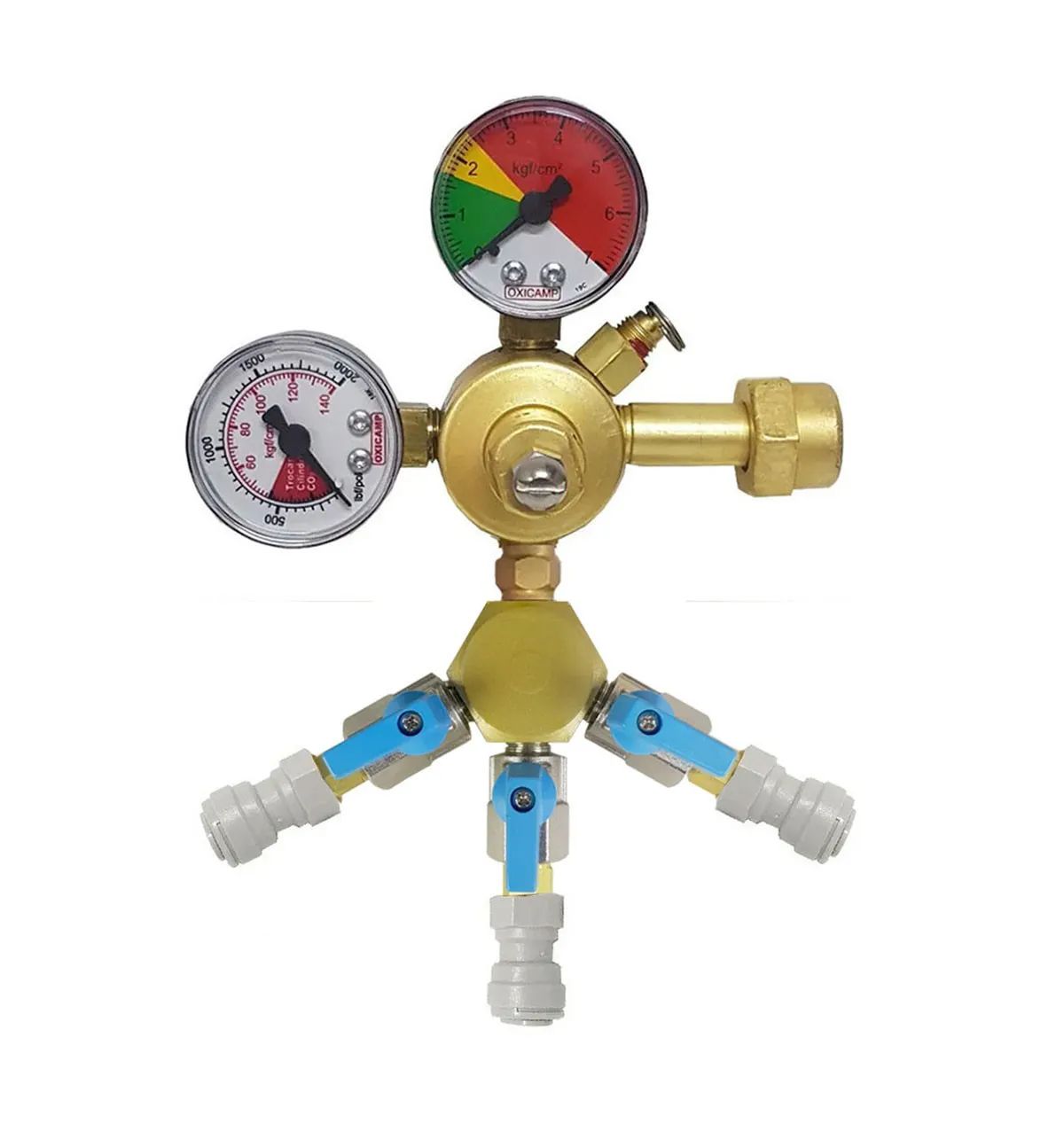 - Regulador de pressão de gás carbônico 3 Saídas (CO2) especialmente projetado p/ pressurização do chopp em barris (kegs) e alimentação de chopeiras de qualquer tipo e gaseificadores